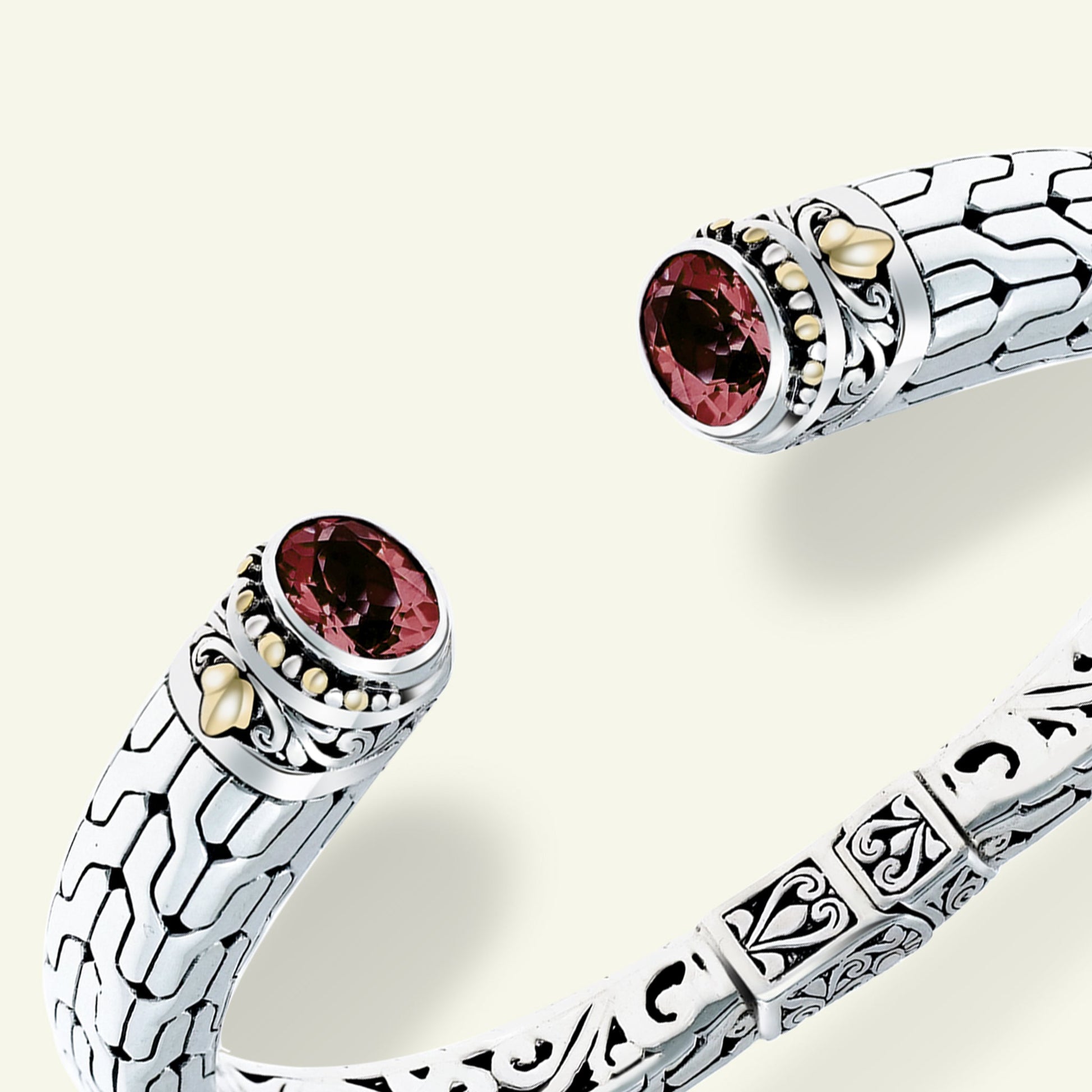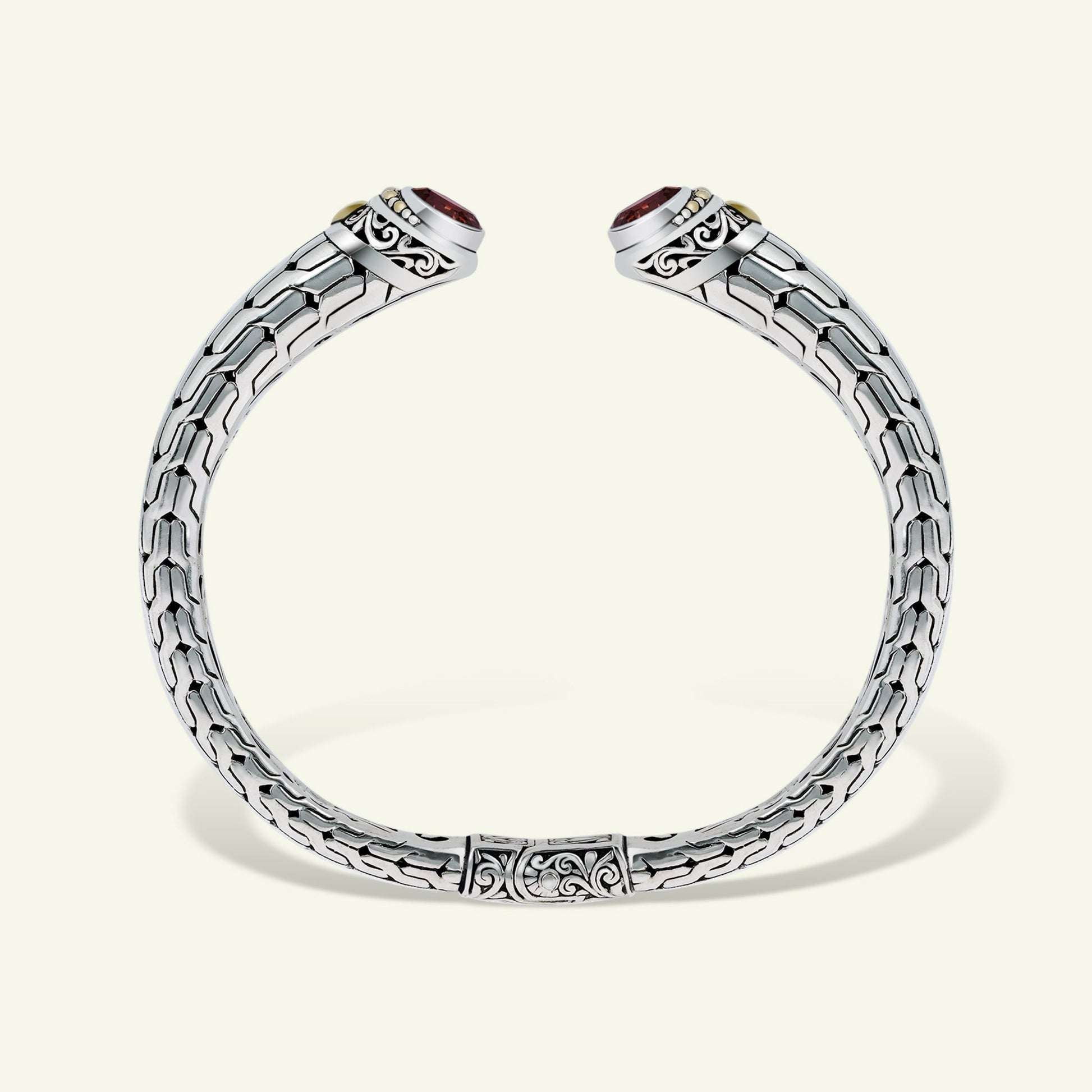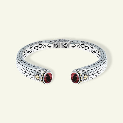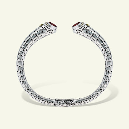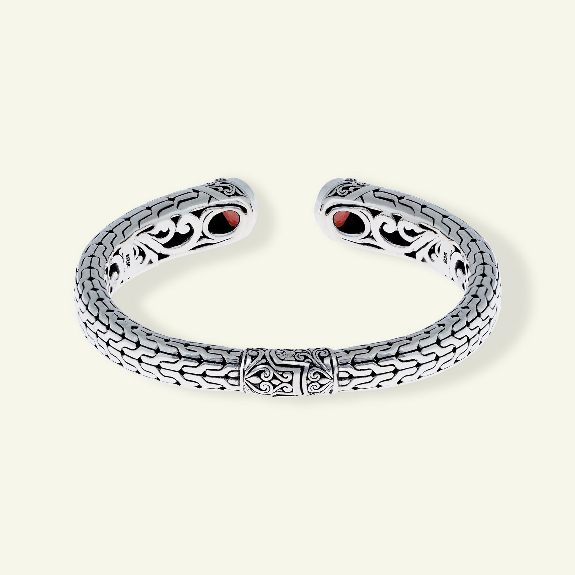 Crafted from high-quality sterling silver, this exquisite cuff bracelet features finely set gemstones and engraved detailing inspired by the sacred artistry of Balinese temples. The open cuff design offers both comfort and a refined fit, making it ideal for everyday wear or special occasions. Designed to embody timeless elegance, this luxury silver bracelet reflects a harmonious blend of cultural heritage and modern sophistication. A truly captivating jewelry piece that adds lasting value and understated luxury to any collection.